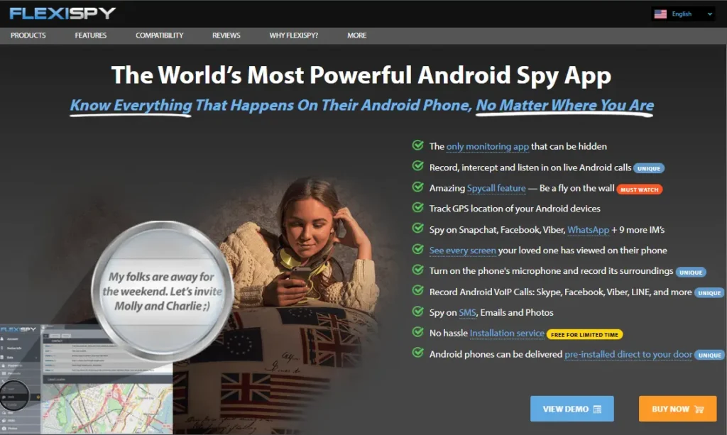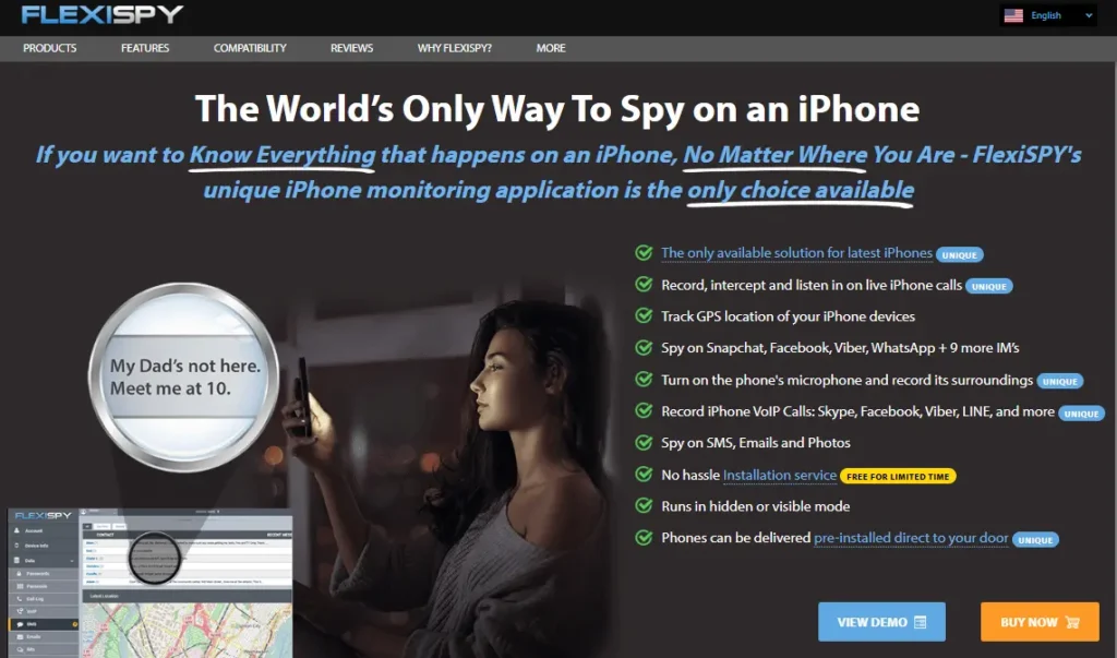 FlexiSPY also supports iPhones, but it typically involves jailbreaking the device. If you can do that, you gain serious power to record calls on the phone, preview erased messages from apps such as WhatsApp, Messenger, and Snapchat, remotely turn on the microphone and monitor GPS coordinates